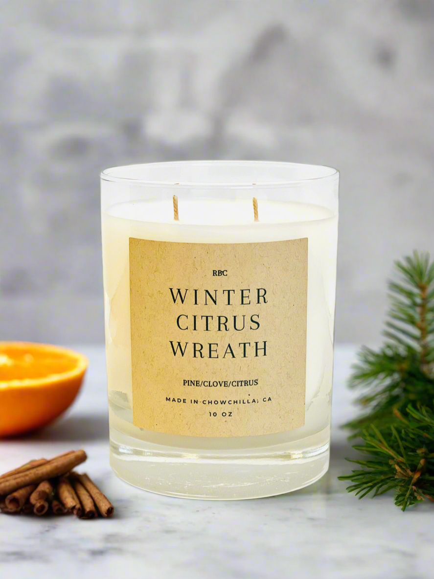 Embrace the magic of the season with Winter Citrus Wreath — a captivating blend of bright citrus, aromatic pine, and warm clove, finished with soft hints of musk and wood. This refreshing yet cozy fragrance transports you to a sparkling winter wonderland kissed with citrus and evergreen charm.